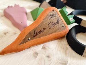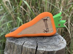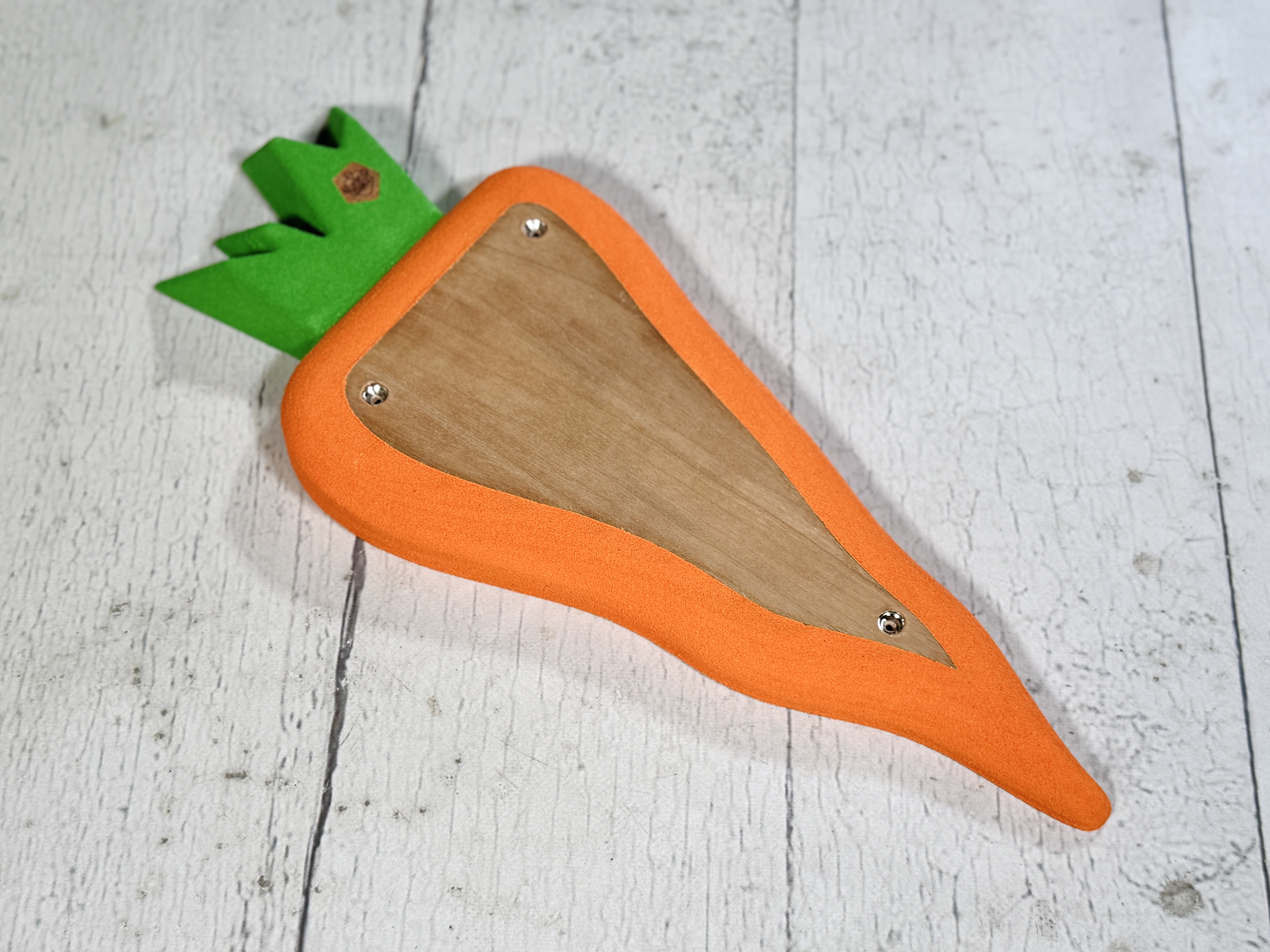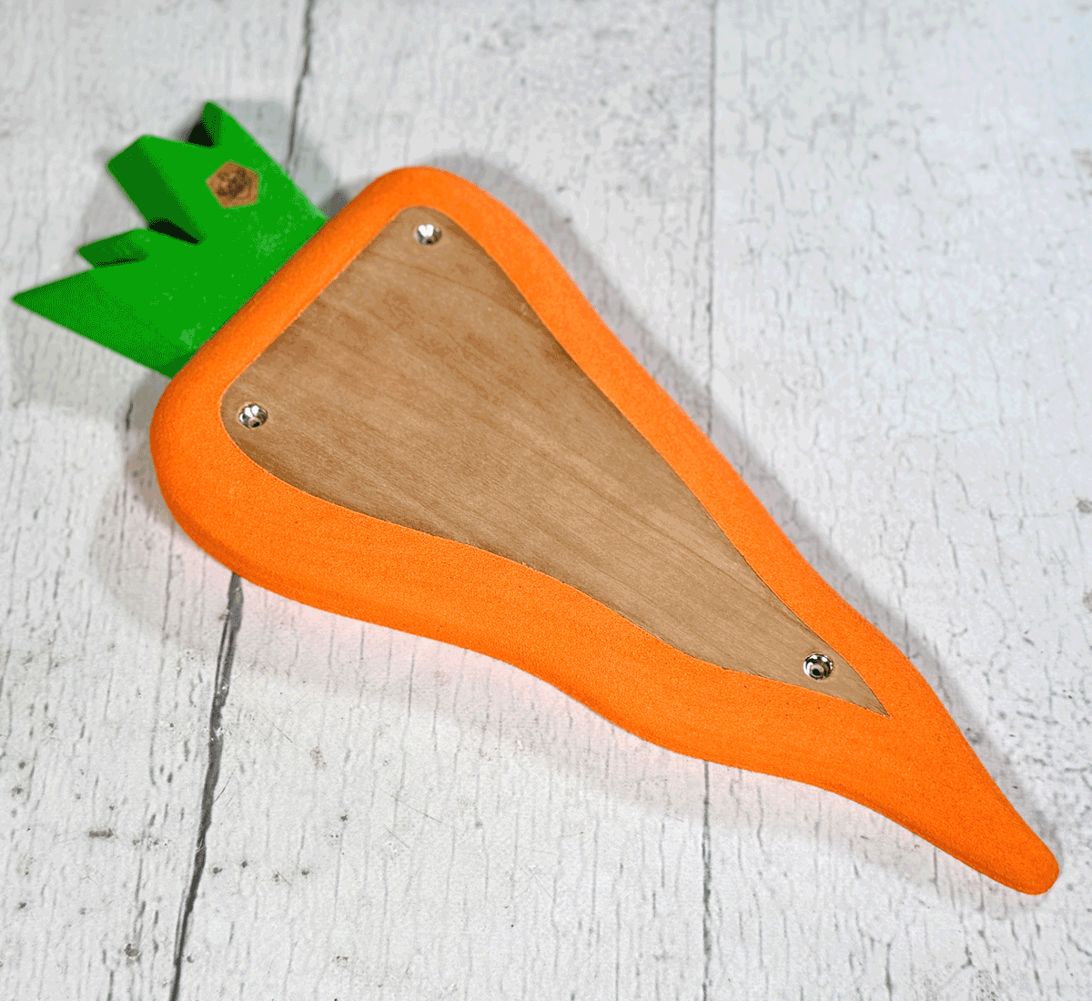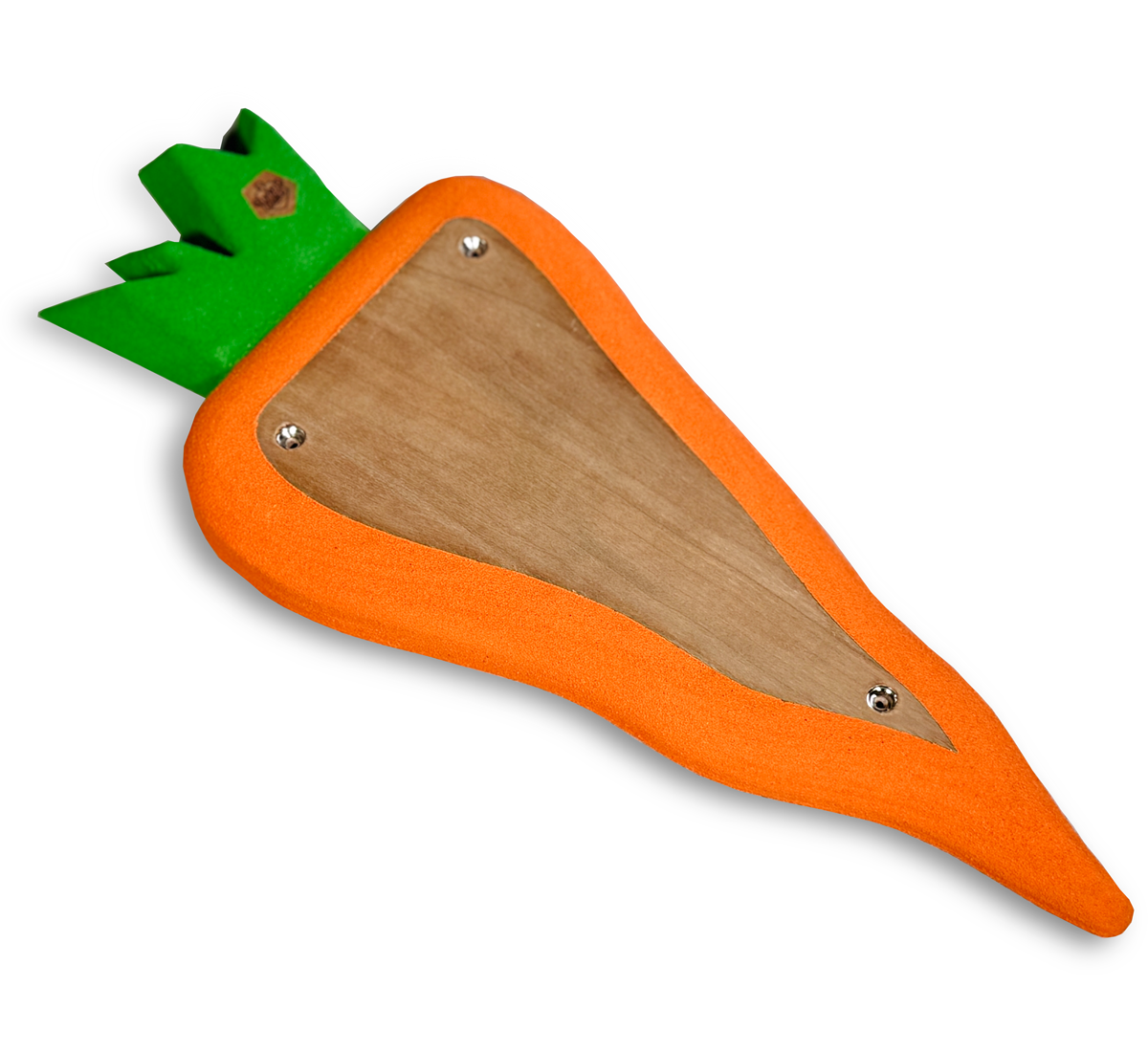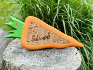 Personalisierbare Karotte mit zwei farblichen Strukturflächen und einer Holzveredelung